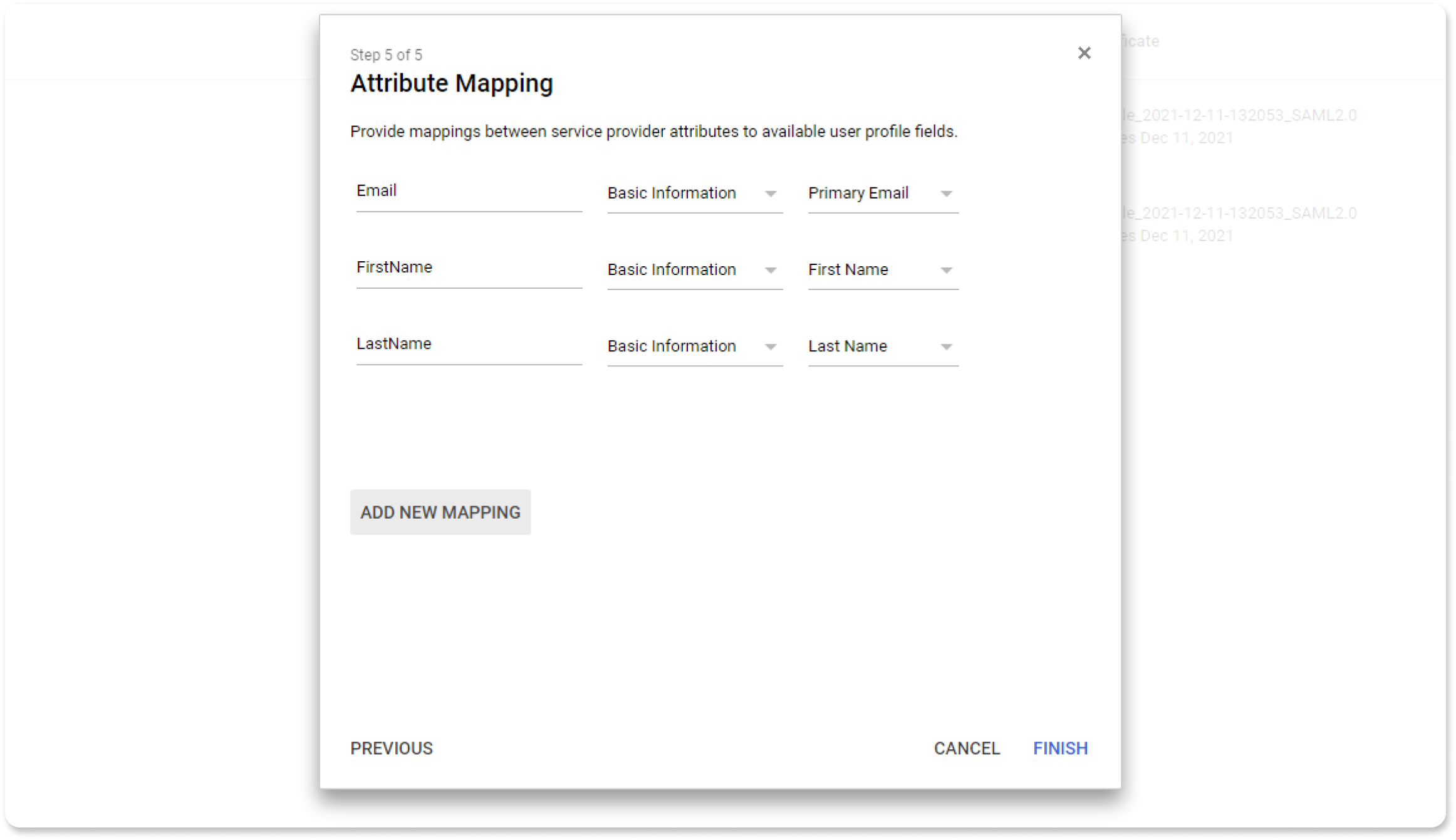 - Choose Basic information and Primary Email for the Name ID option and finally set Name ID Format to EMAIL.