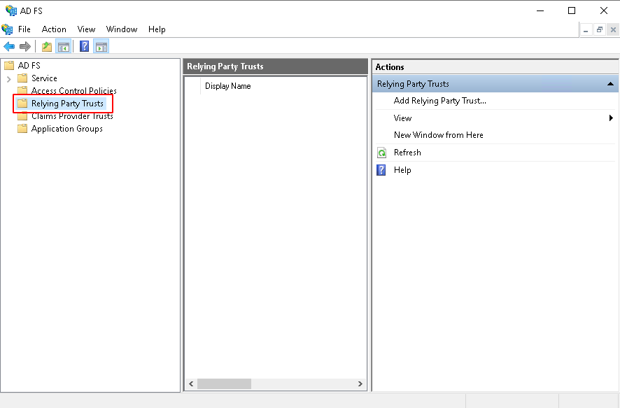 - Navigate to your AD FS Management tool, then open the Trust Relationships folder in the left sidebar.