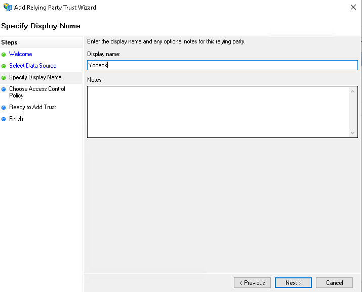 - Enter Yodeck in the Display Name field, and add any additional notes that you would like.